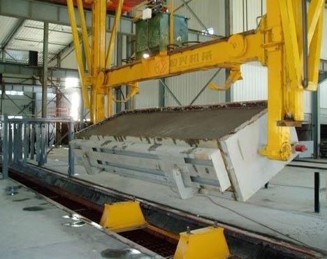 加氣(qì)磚翻轉吊(diào)具是加氣(qi)混凝土生(shēng)産中的主(zhu)要配⛱️套設(shè)備。屬于㊙️加(jiā)氣混凝土(tu)設備的重(zhòng)要組成部(bù)分,吊具将(jiang)坯體吊放(fang)在切割台(tái),脫去模框(kuang),坯體即能(neng)切割。 翻轉(zhuan)吊具把模(mó)具空中翻(fan) 90 度後(hou)脫模把坯(pi)體連同模(mo)具側闆放(fàng)置在切割(ge)小車上,進(jin)入下❌一🔴步(bu)切割部分(fen)。